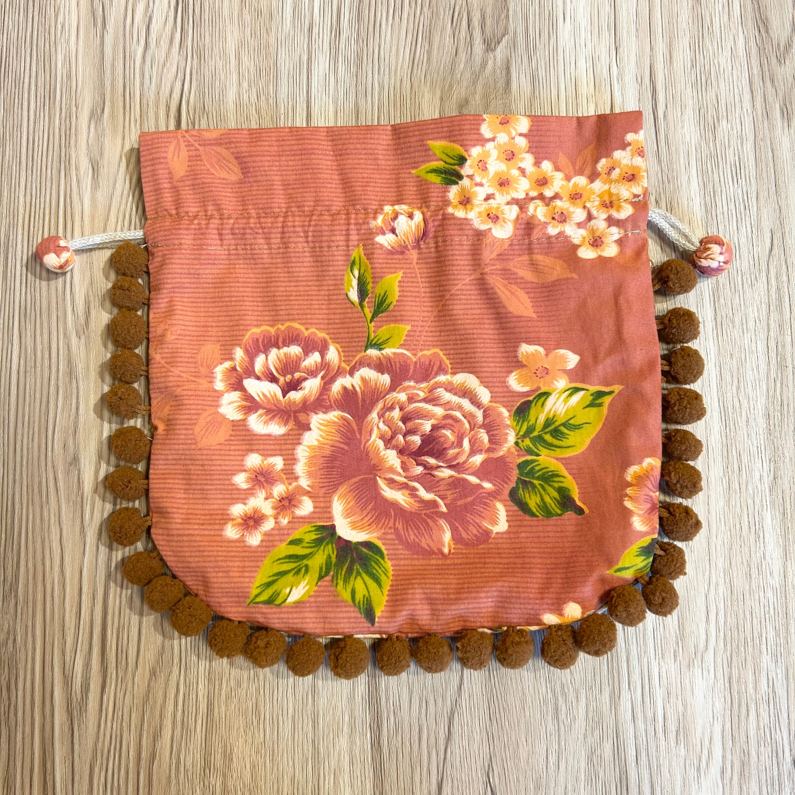 新ポンポンきんちゃく(台湾花布アンティークピンク×ブラウン)