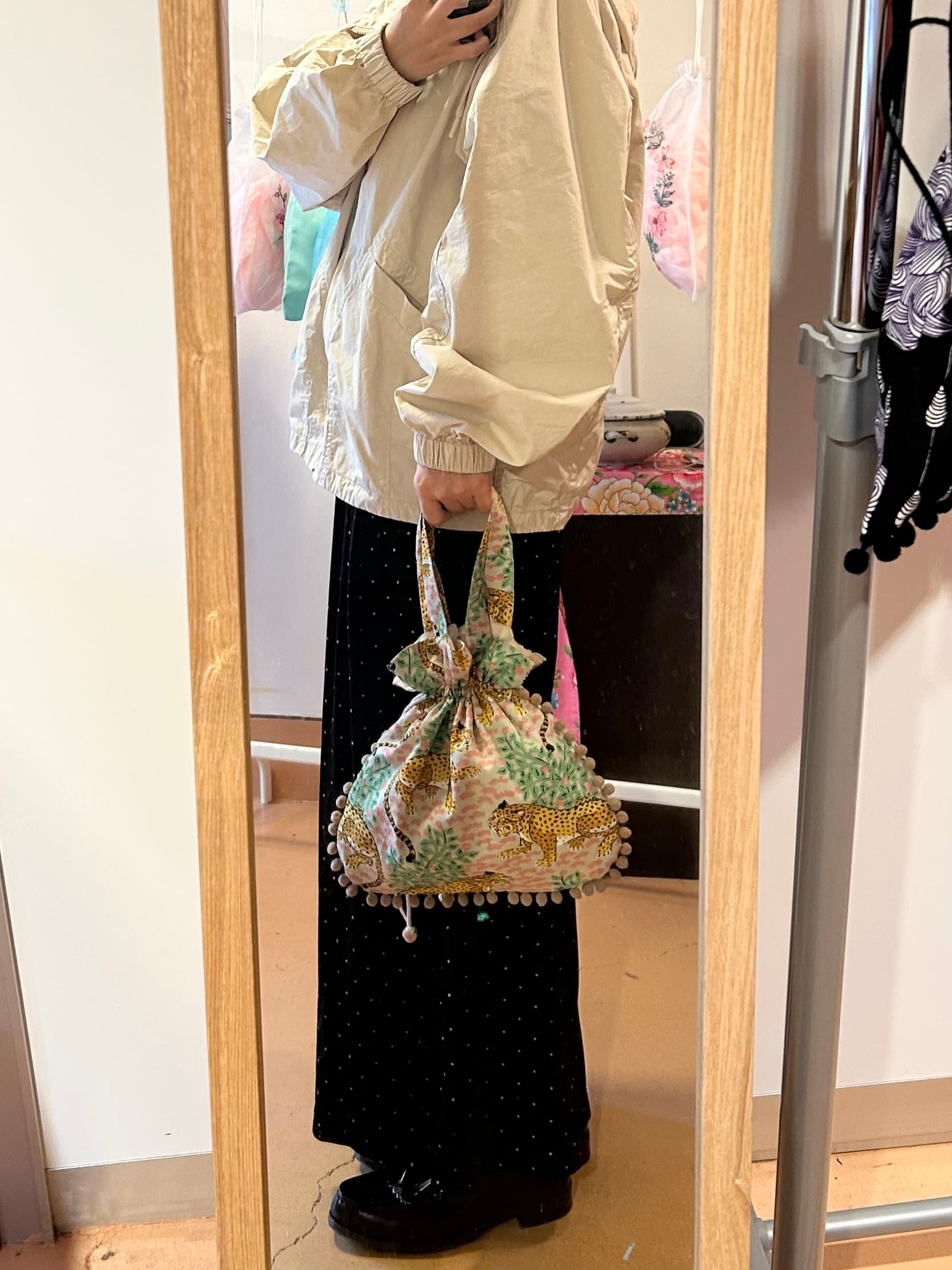 新ポンポンきんちゃくミニバッグ(チーターモカ)