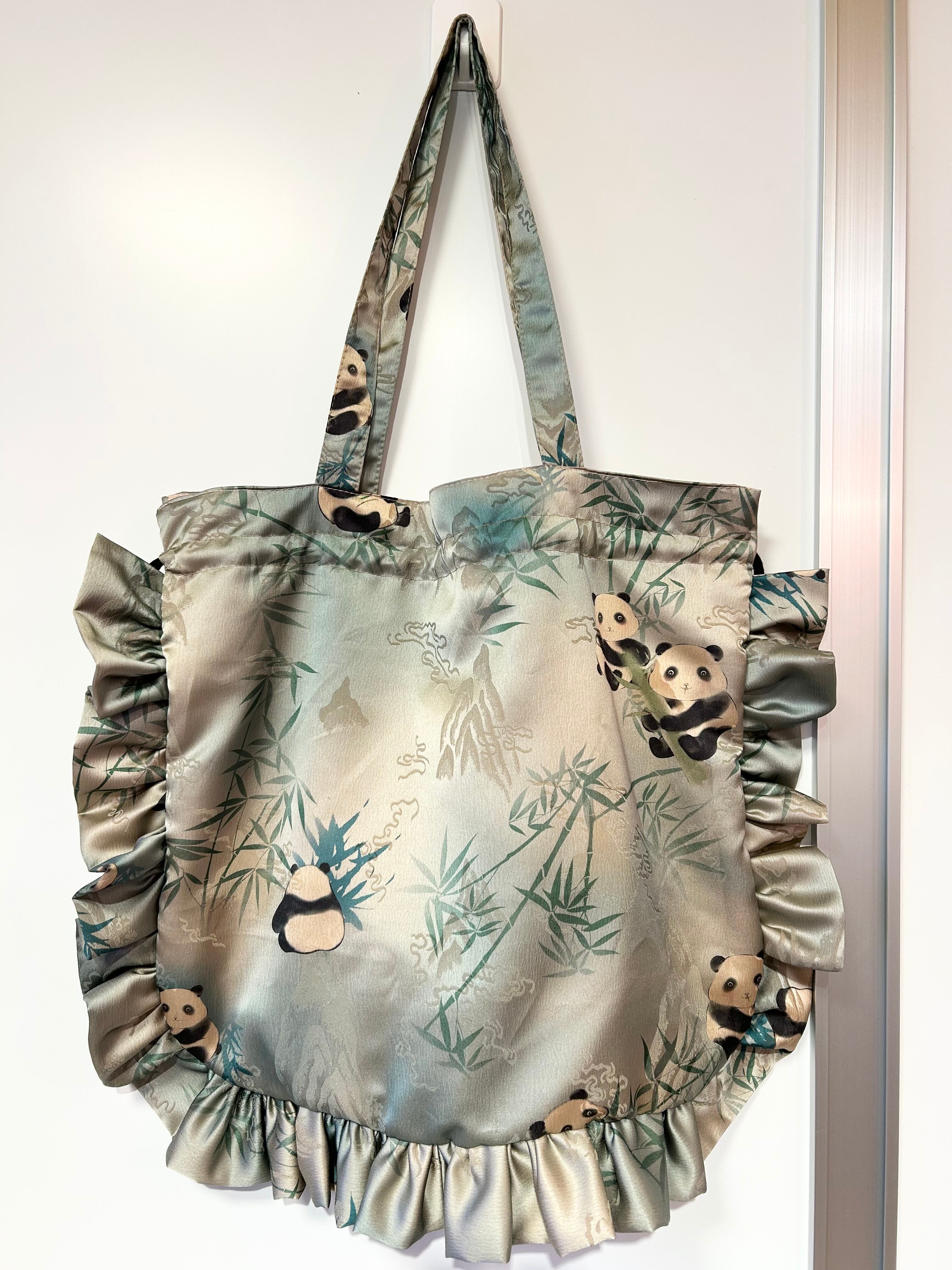 大人っぽいサテン素材なのにパンダ柄というミスマッチがかわいい!