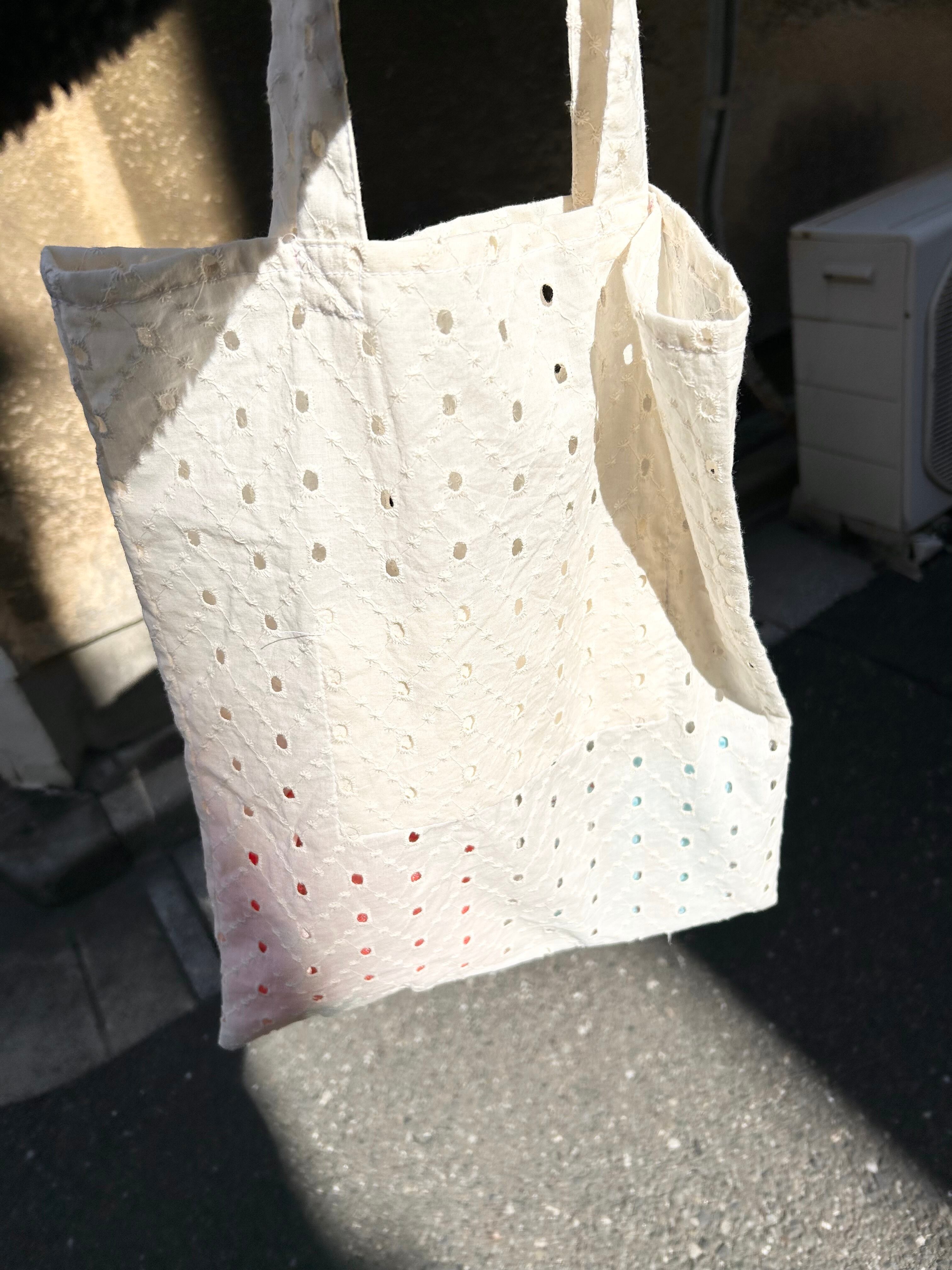 レース生地なので耐久性は他の生地に比べると劣ります。2キロ以上の重いものや、先の尖ったものにご注意ください。
