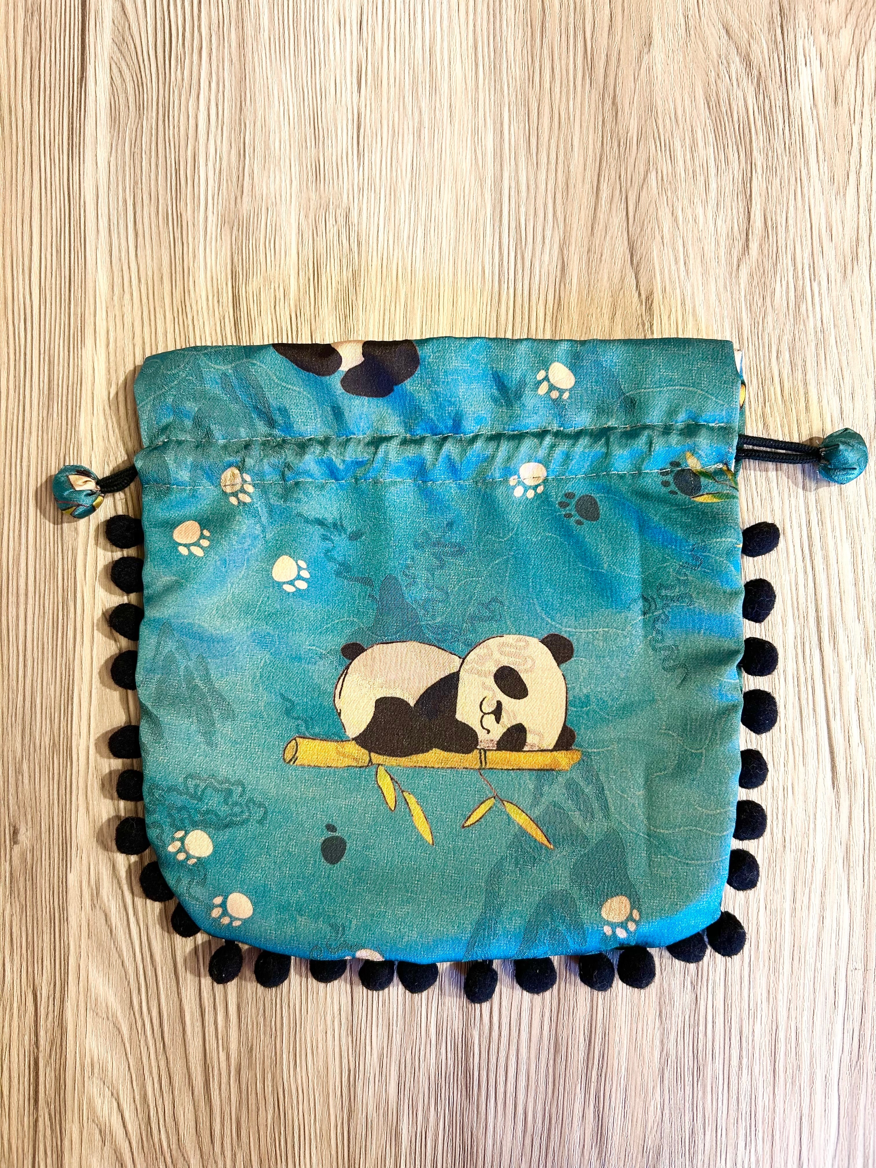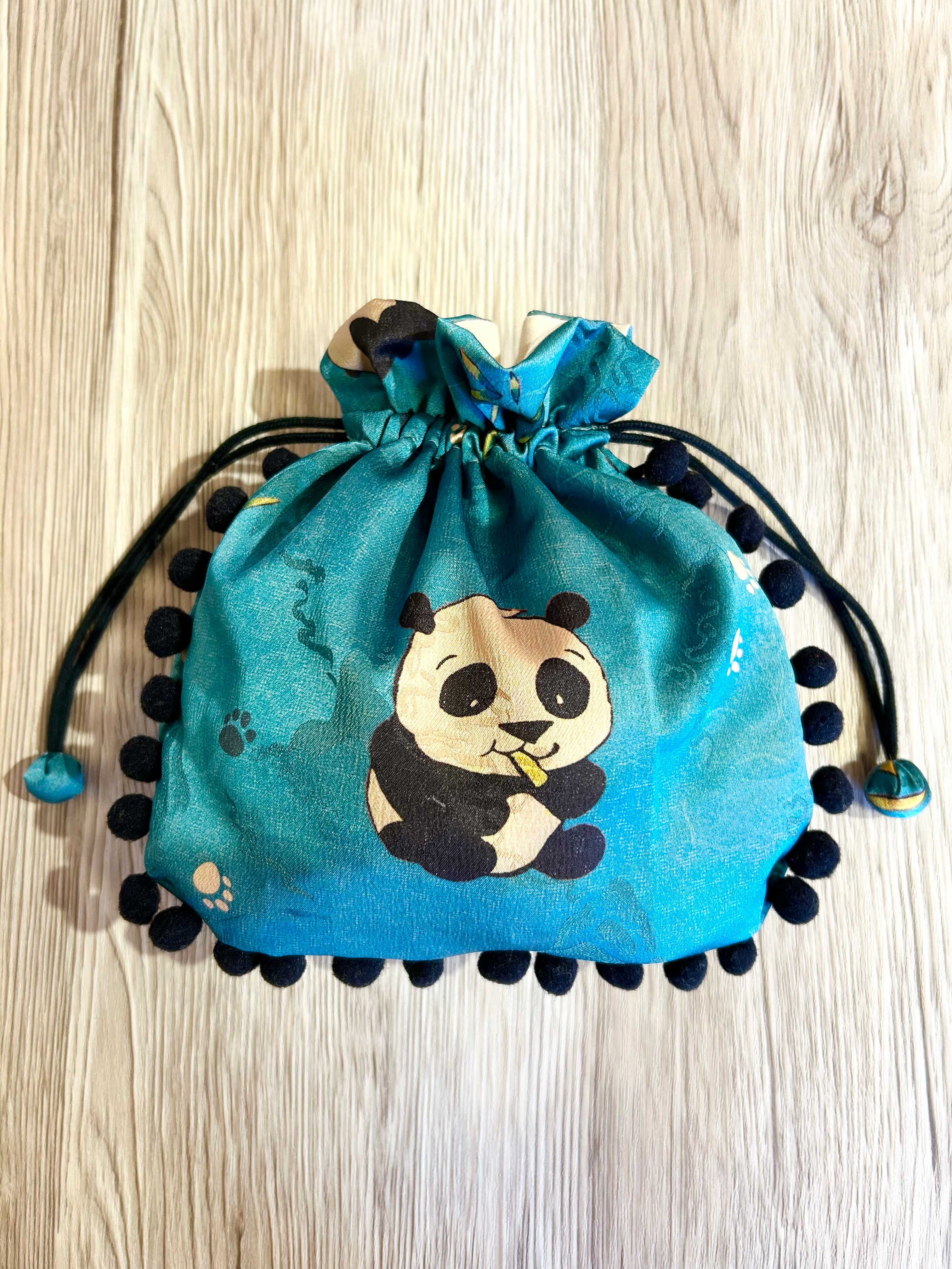 新ポンポンきんちゃく(サテンパンダブルー×黒)