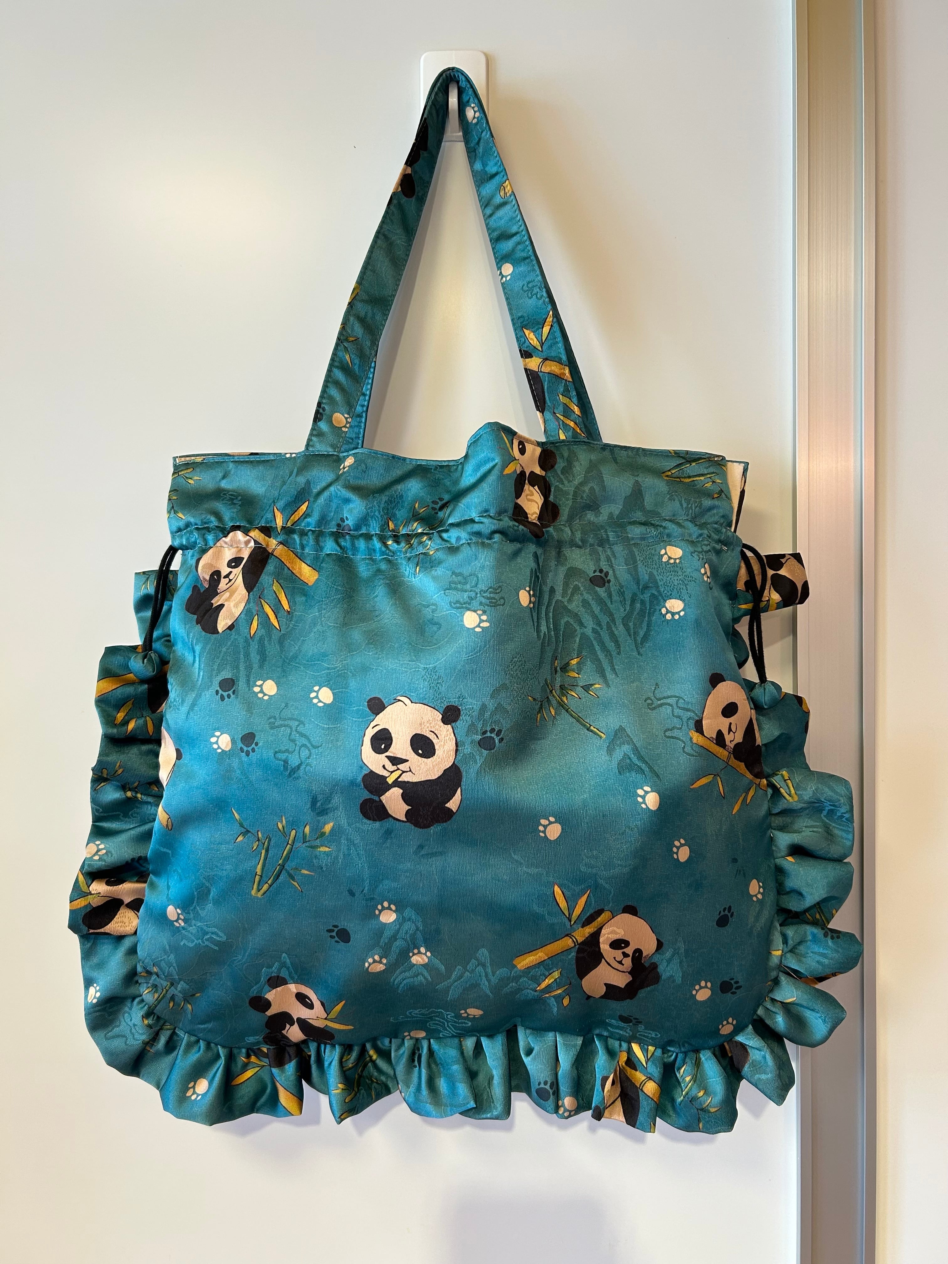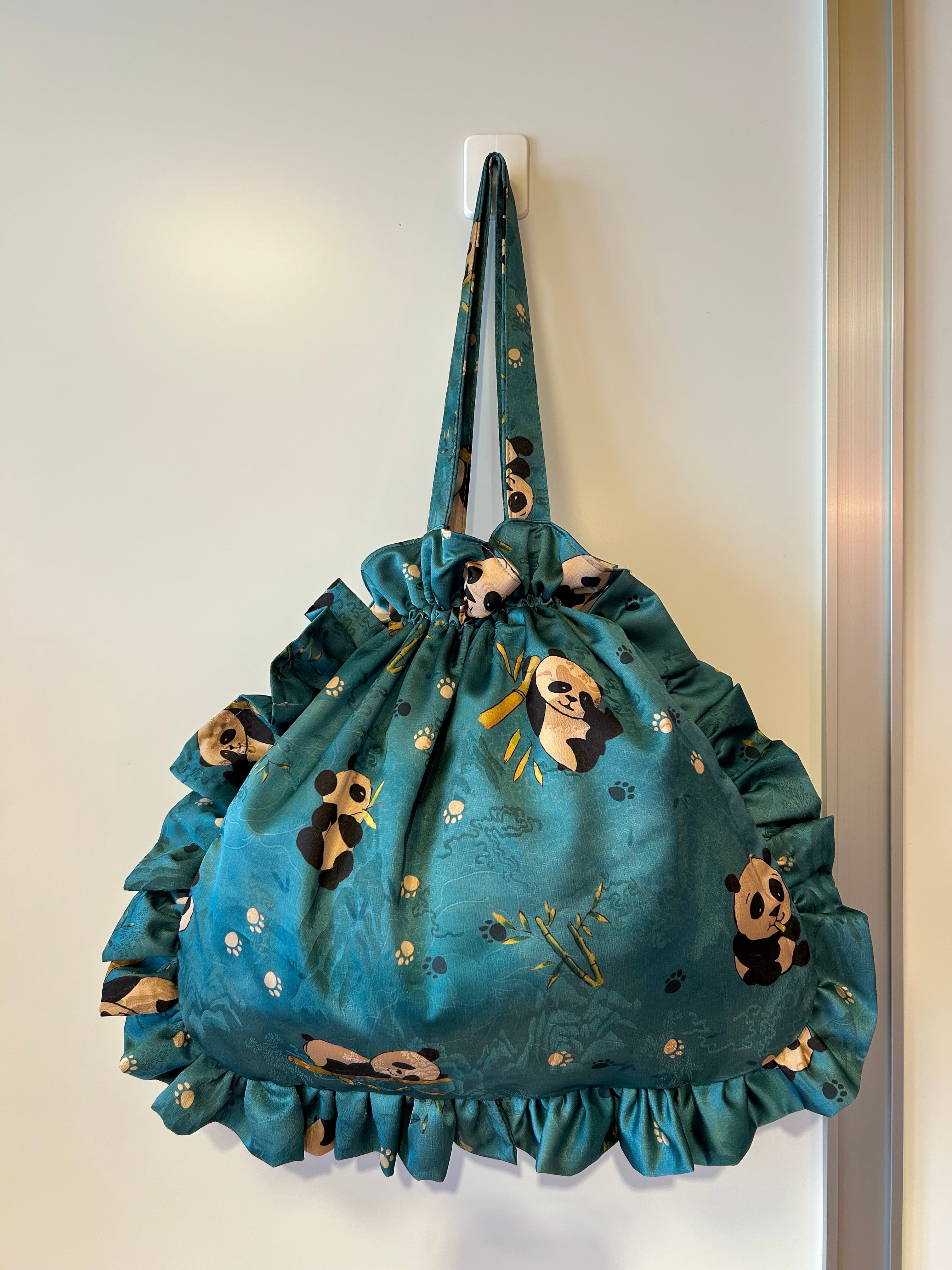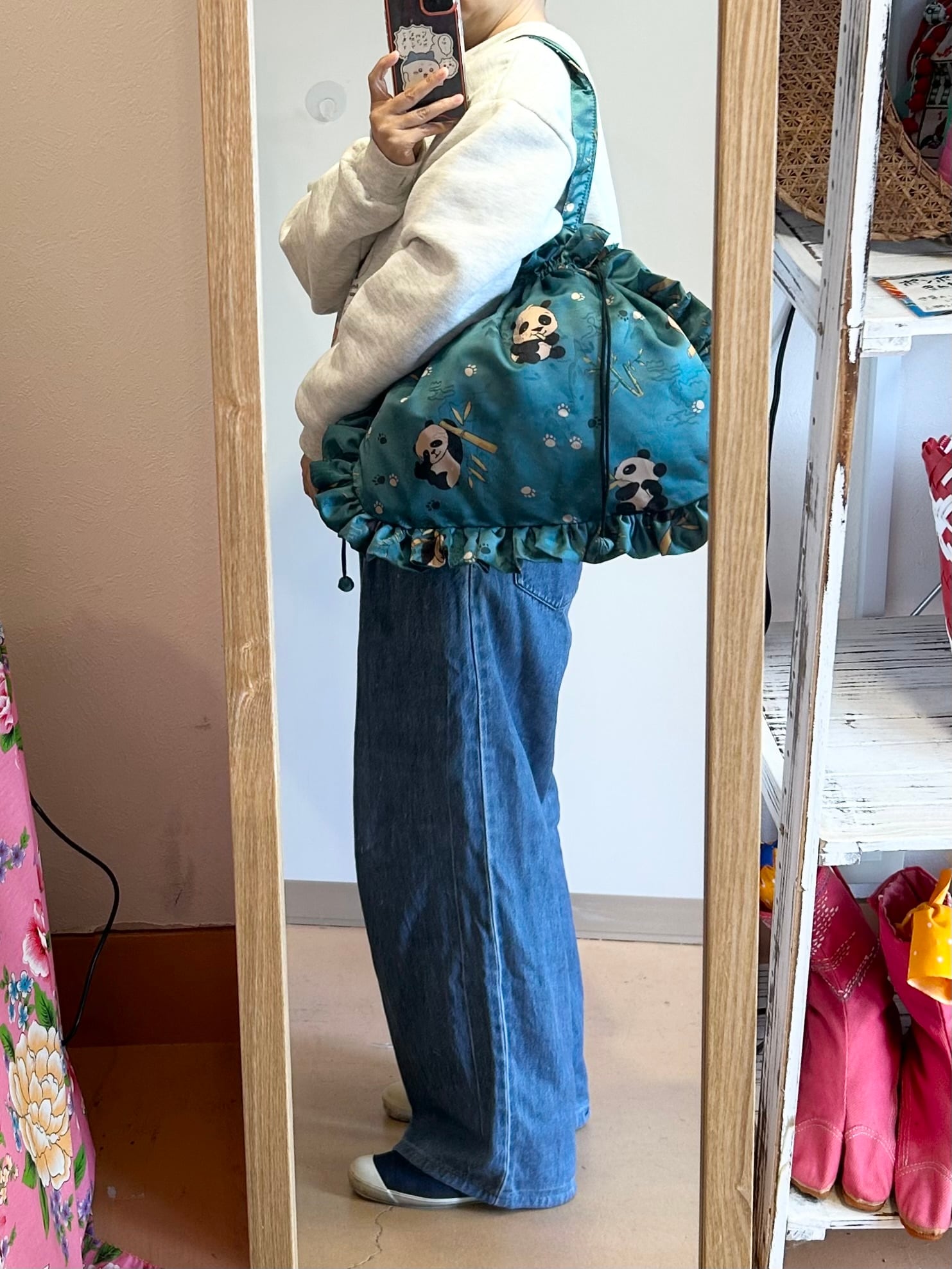 フリルきんちゃくバッグ(サテンパンダブルー)