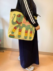 ぞうさんのカラフルなパッチワークがカワイイトートバッグです。