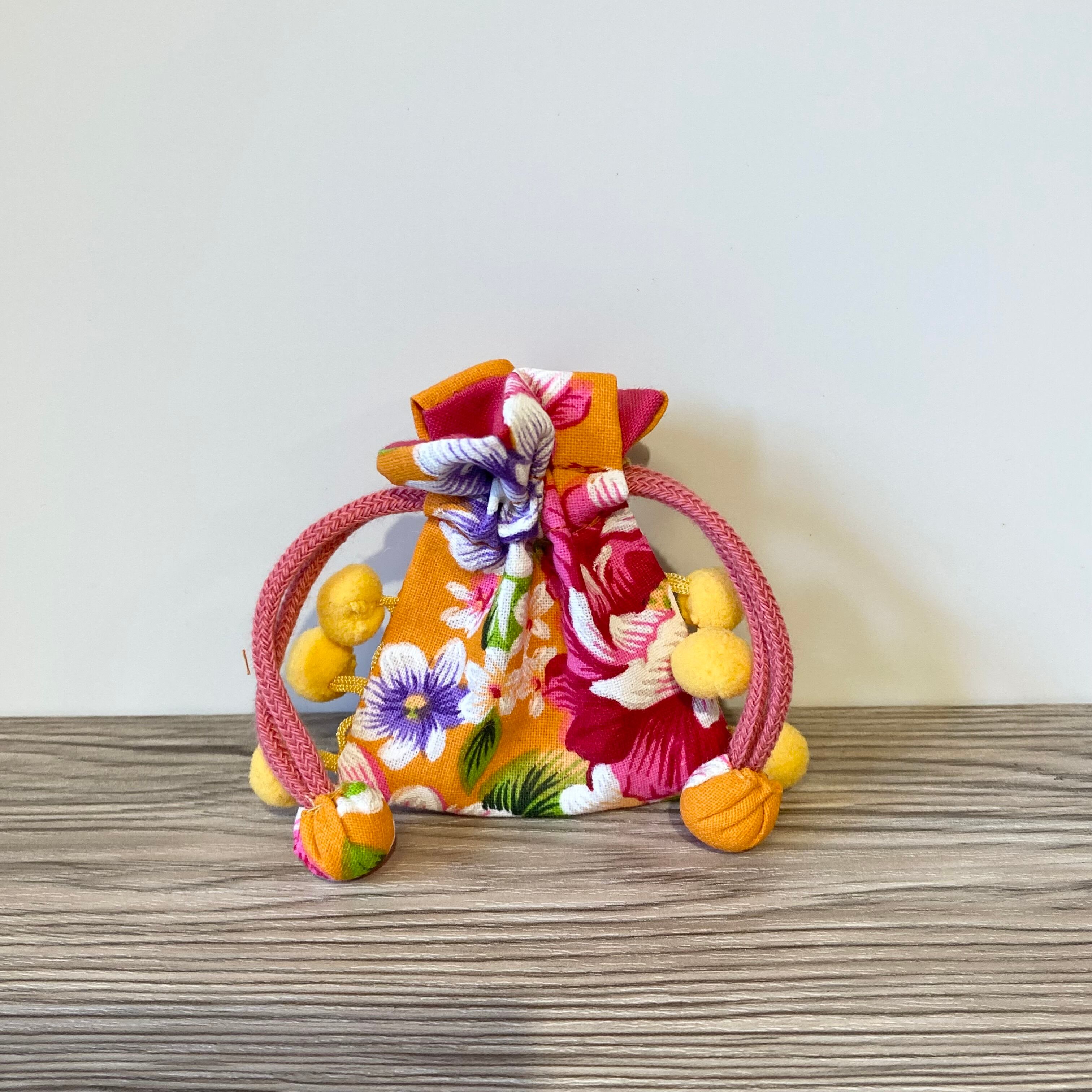 スーパーミニポンポンきんちゃく(台湾花布オレンジ))