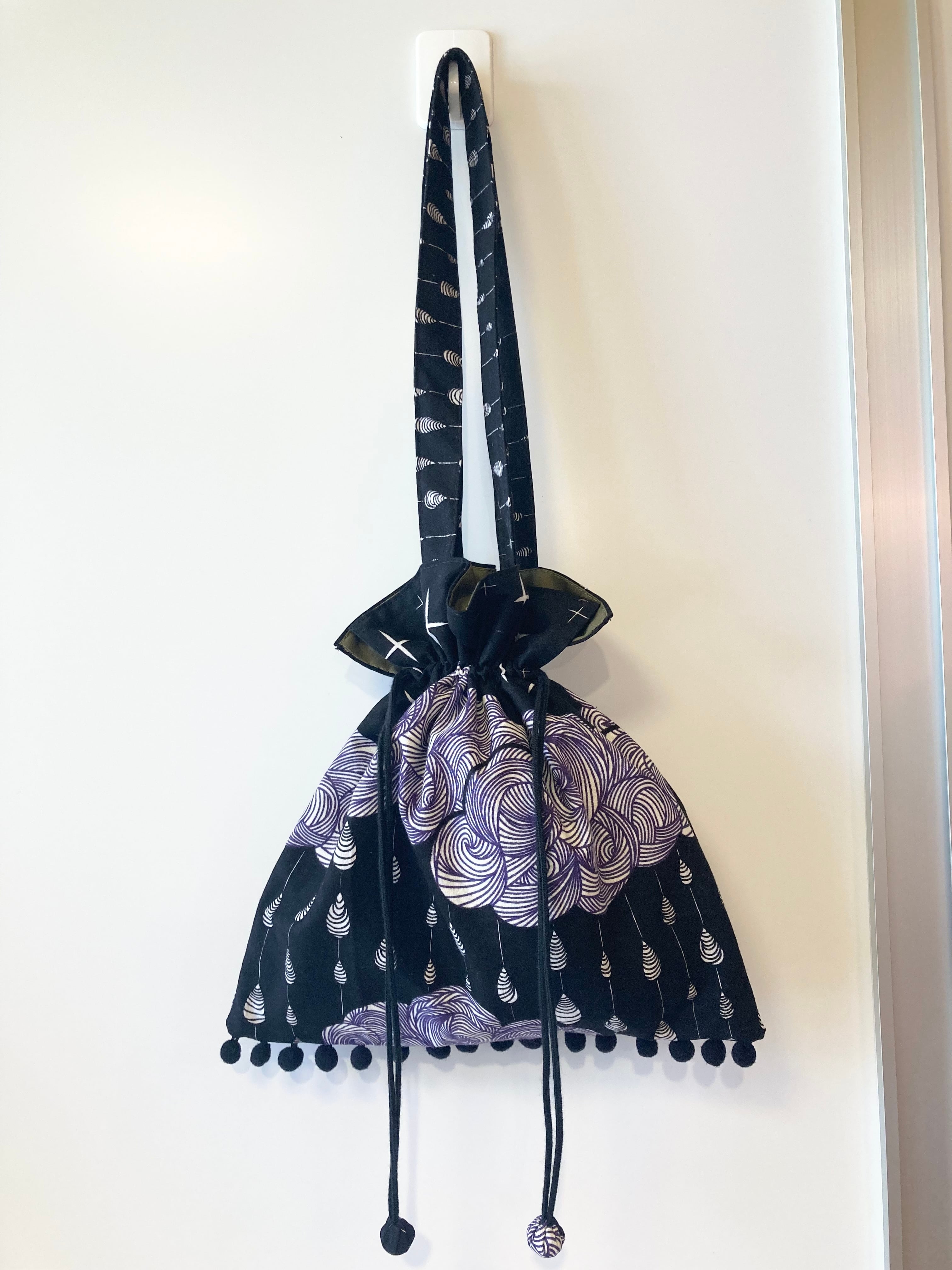 ポンポンきんちゃくミニバッグ(アフリカン雨)