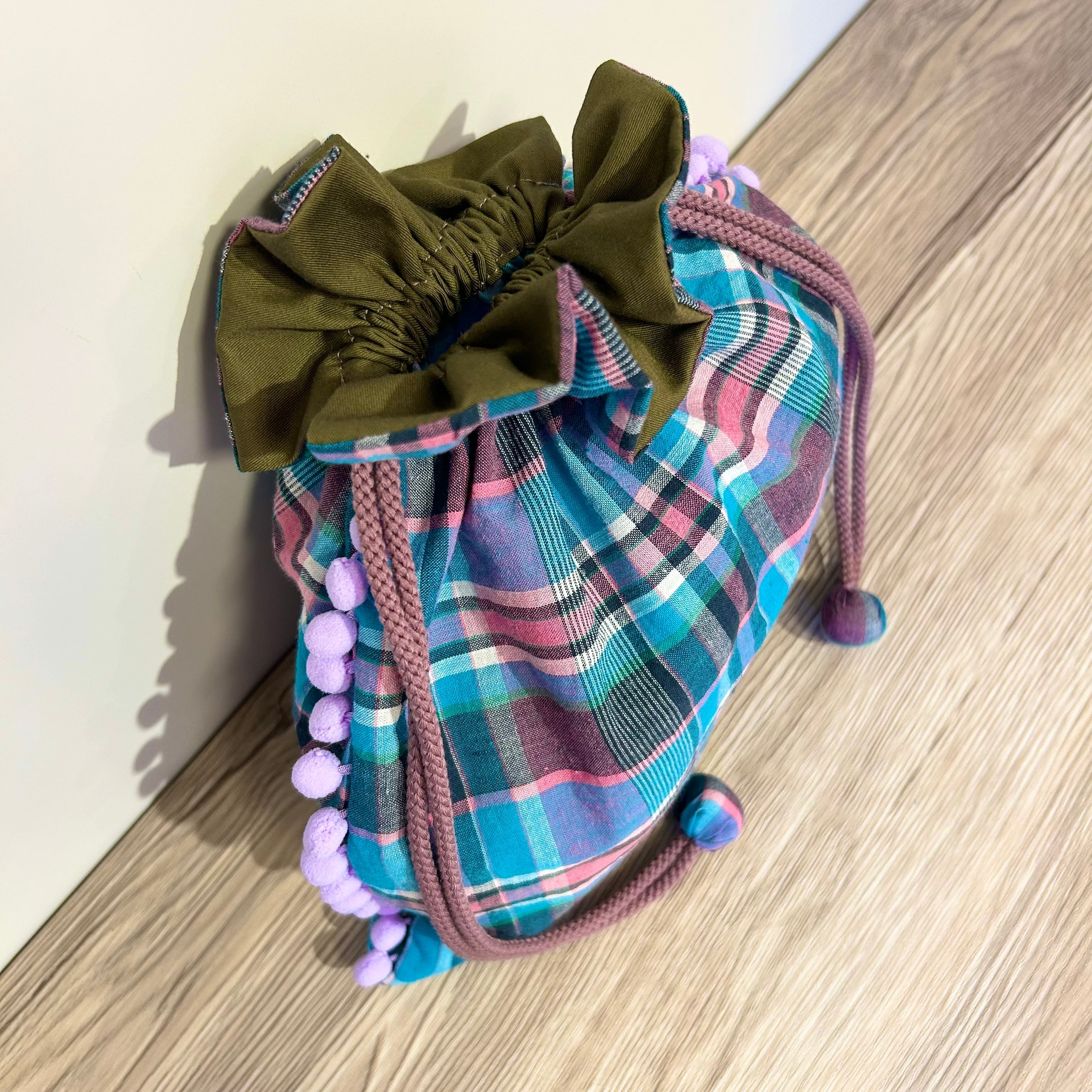 インド綿マドラスチェックのブルーで涼しげかわいく♪