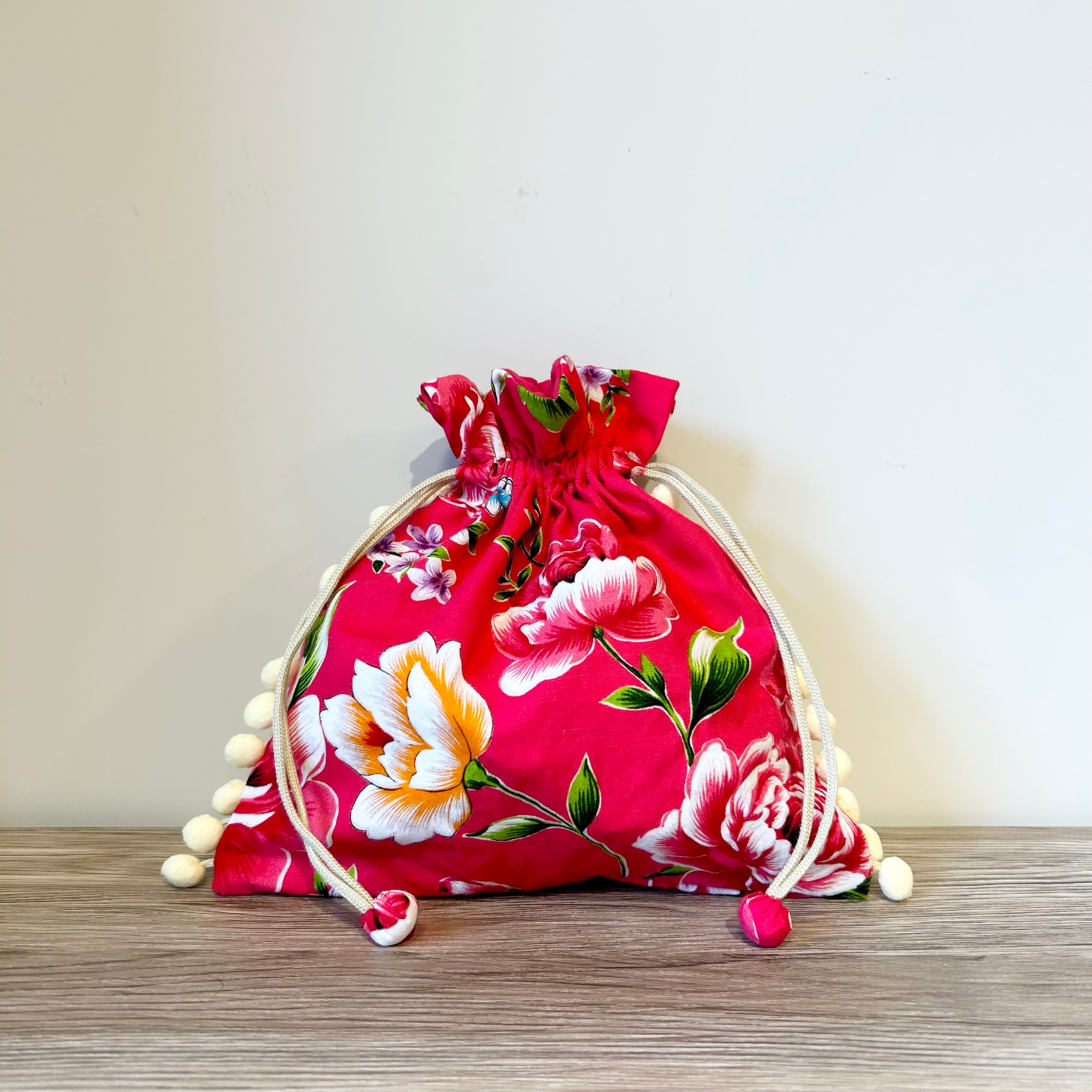 SALE✴︎ポンポンきんちゃく(台湾花布ショッキングピンク)